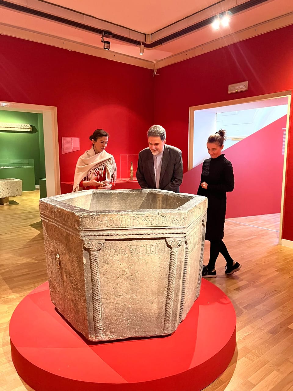 Uz stručno vodstvo gospođe Petre Vugrinec, muzejske savjetnice, i gospođe Ive Sudec Andreis, više kustosice, veleposlanik je istražio znakovitu zbirku od više od 400 artefakata, umjetničkih djela, povijesnih dokumenata i arheoloških predmeta koji zajedno prate evoluciju hrvatske državnosti i kulturnog identiteta tijekom više od tisućljeća. Izložba - podijeljena u pažljivo odabrane tematske cjeline - prati pravni i simbolički kontinuitet Hrvatskog Kraljevstva, od ranosrednjovjekovnih vladara i rođenja države, kroz stoljeća interakcije s velikim europskim silama poput Franačkog Carstva, Bizanta i Habsburške Monarhije, do mjesta koje je Hrvatska zauzela u modernoj europskoj zajednici.